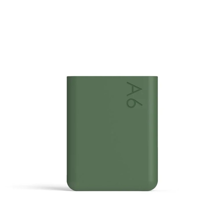 • Power bank portátil verde fosco com texto A6 em fundo branco
