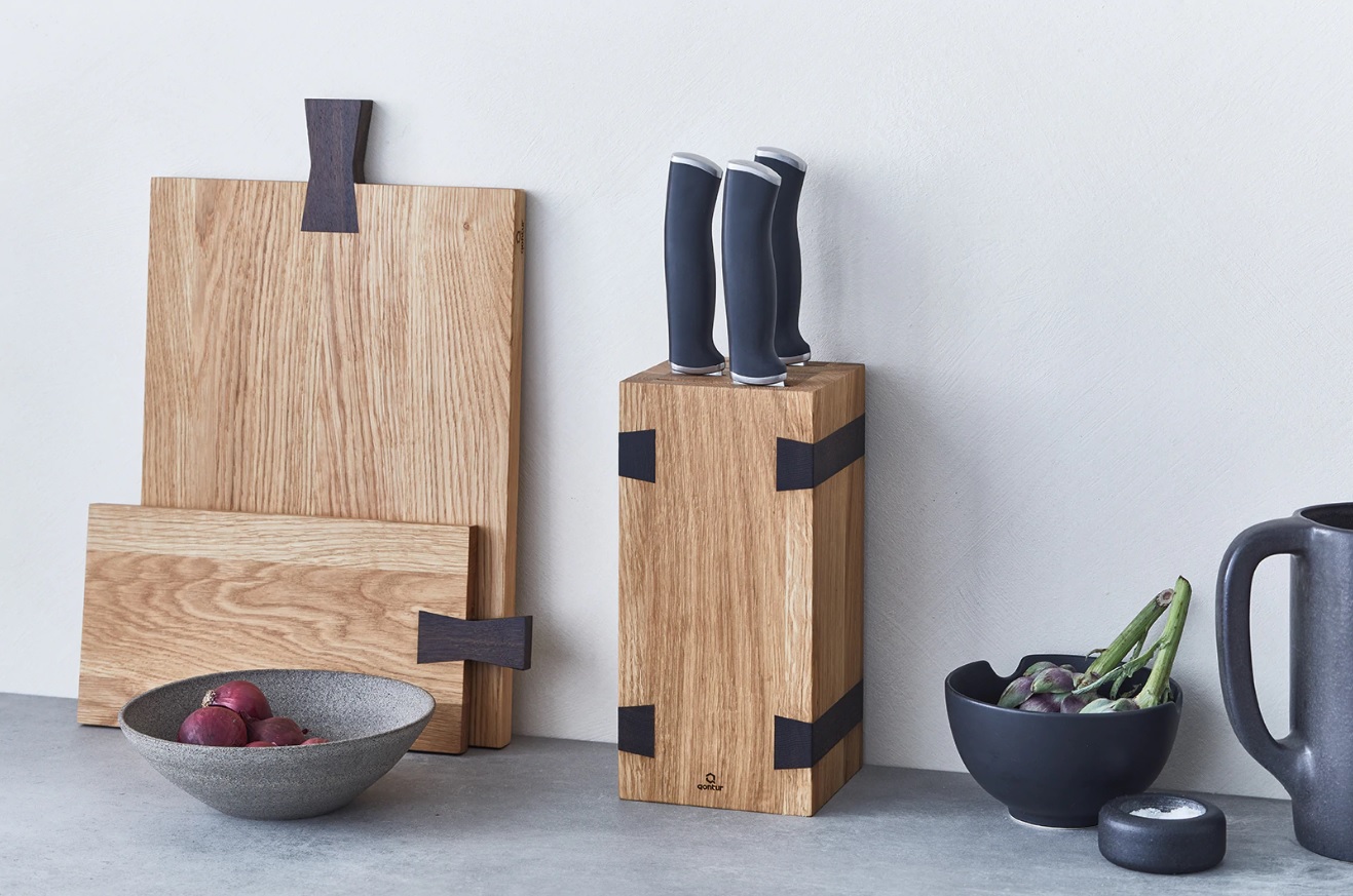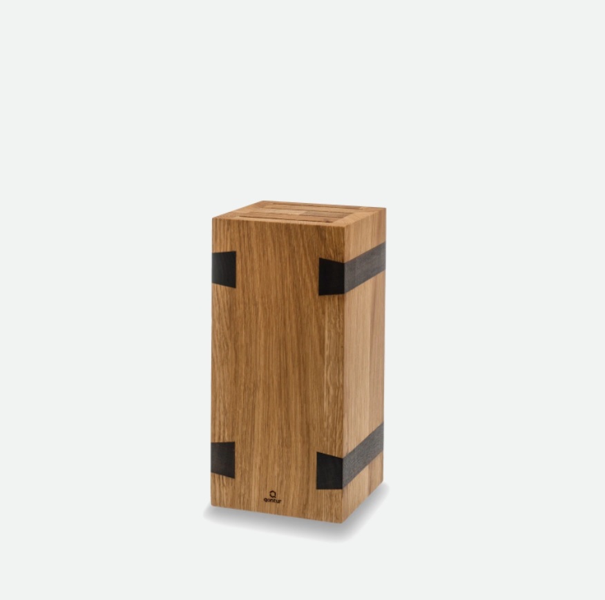 Made in Europe from solid oak from controlled, regional forestry. The knife block has four equally wide slots, one of which is specially designed for thicker blades.