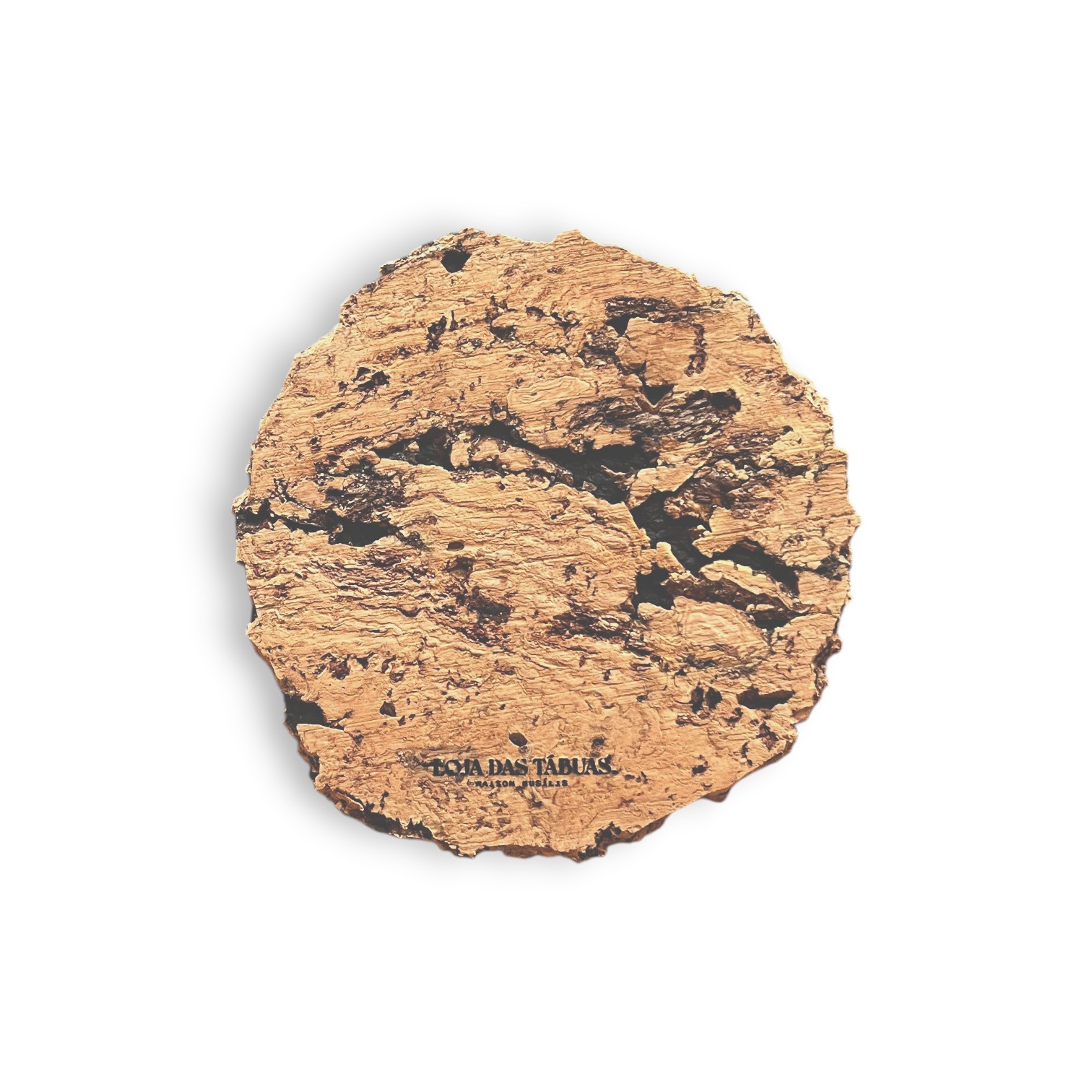 • Disco redondo de cortiça com texto impresso