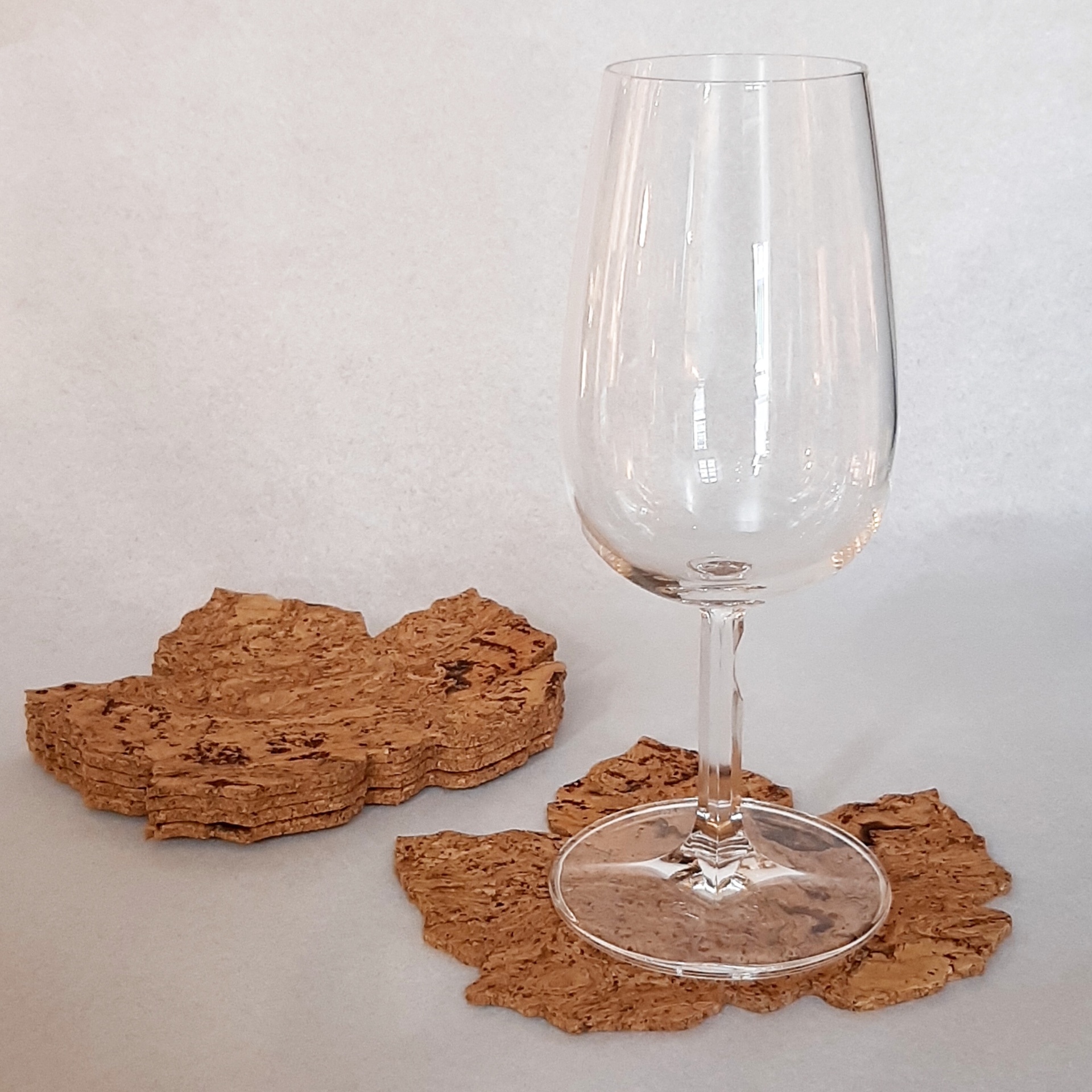 Base de Copos em Cortiça com Formato de Folha de Videira - 1 unidade - Personalize com Gravação a Laser
