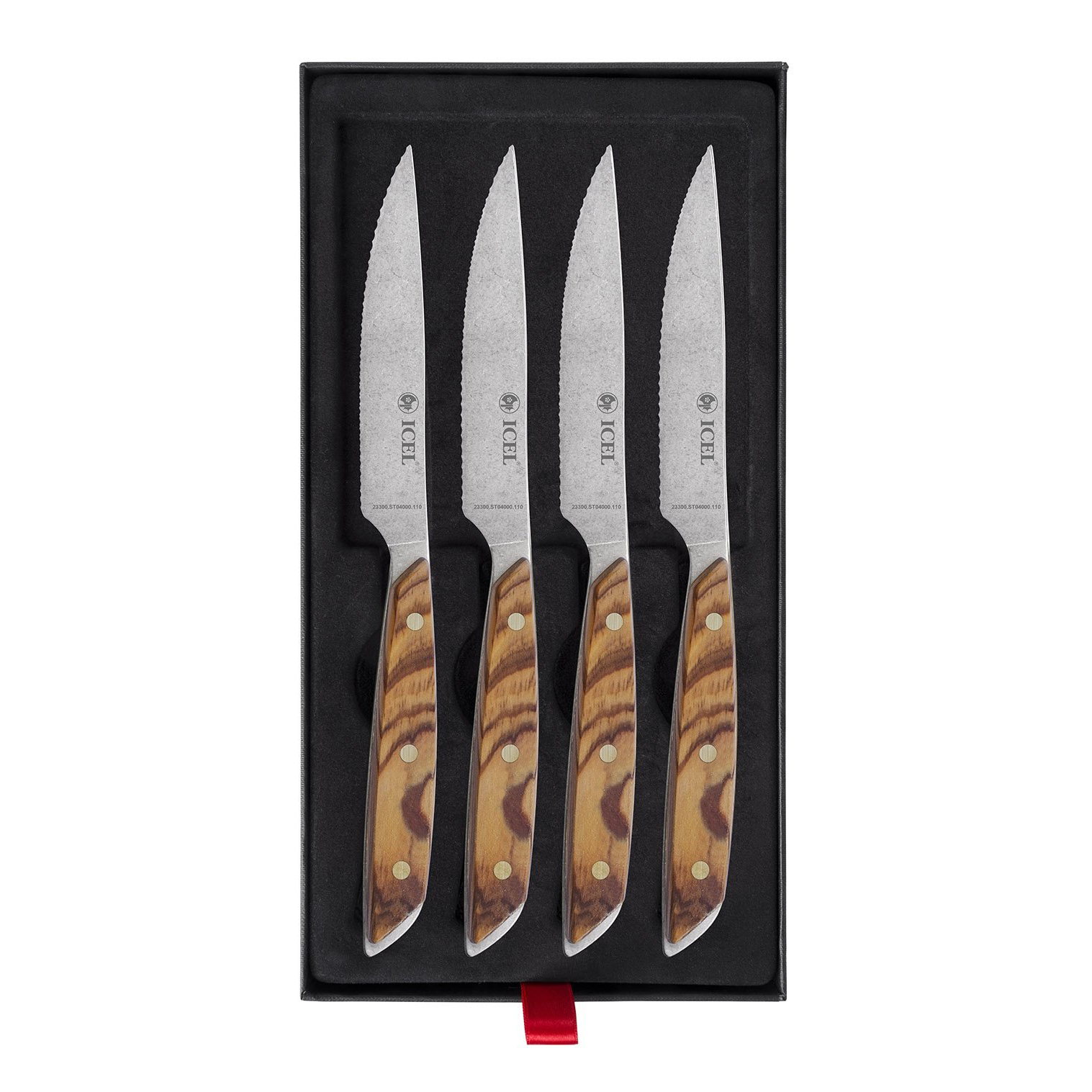 Conjunto de 4 Facas para Carne com Serrilha – Cabo em Madeira de Oliveira