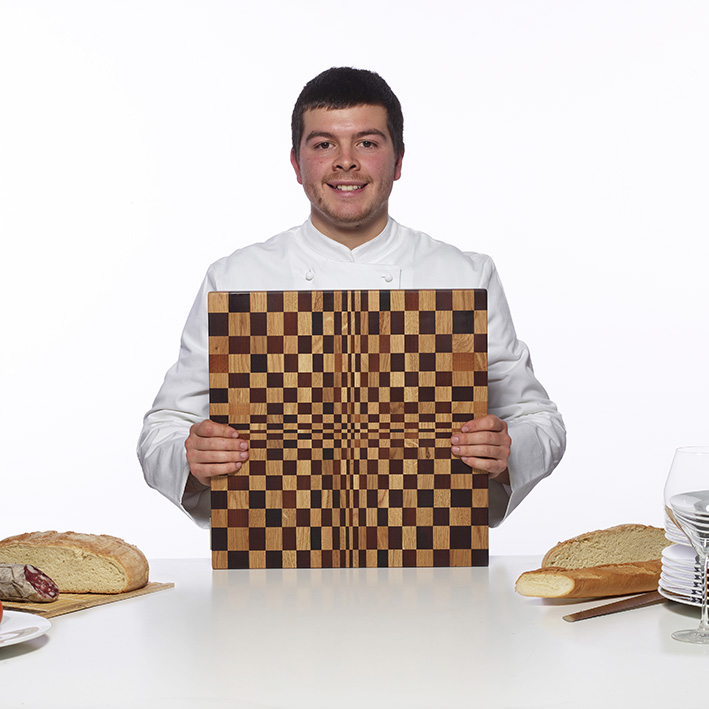 • Tabuleiro quadrado de madeira com padrão quadriculado e efeito visual