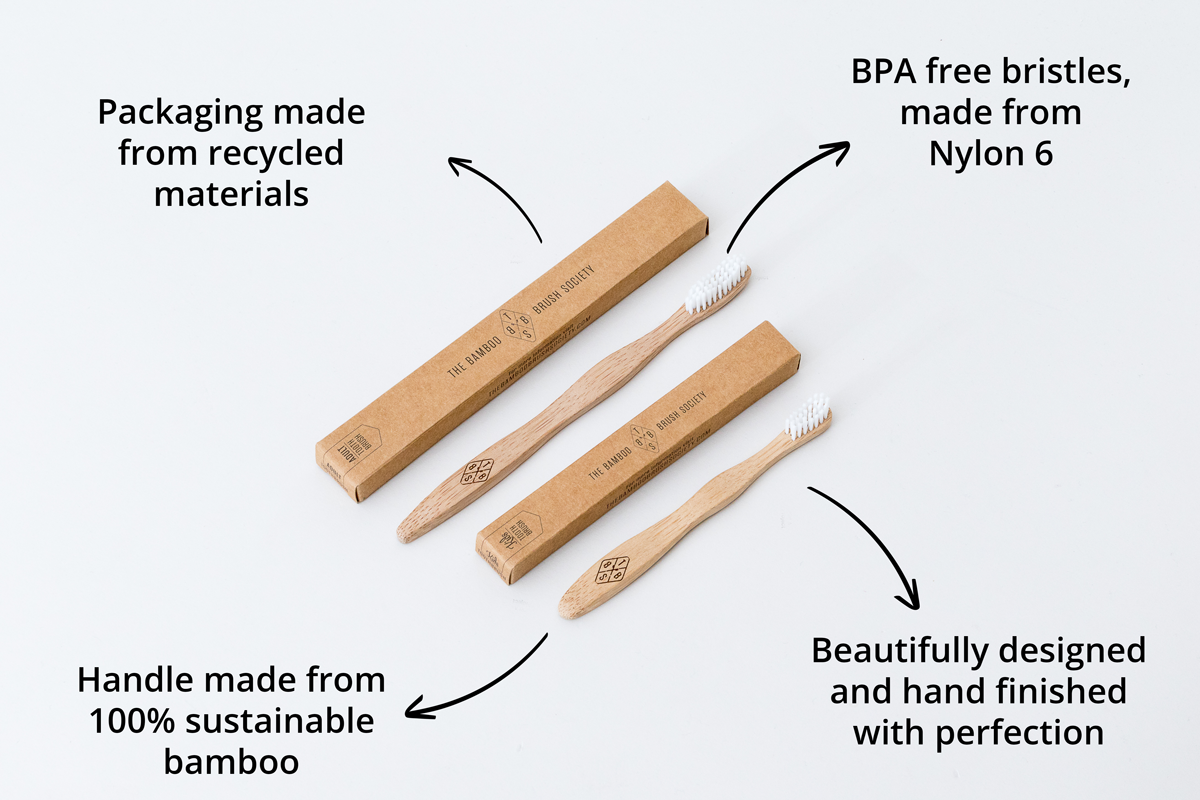 Our curved bamboo handle is easy-to-grip, naturally antibacterial, and 100% biodegradable.