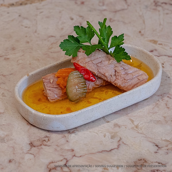 FILTES DE ATUM EM AZEITE PICANTE E PICKLES