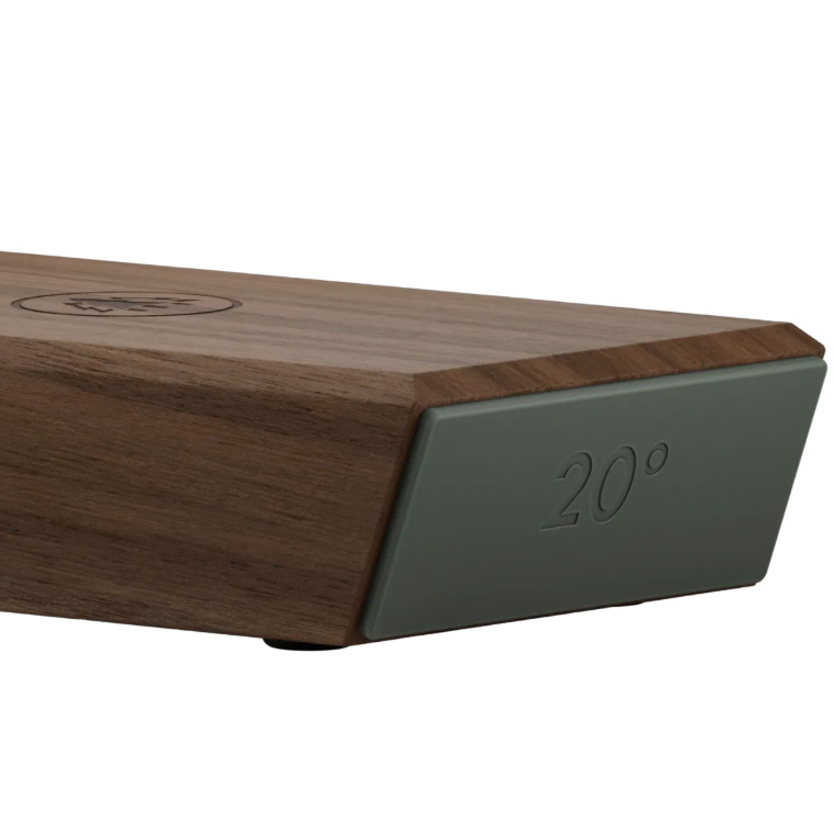 O ângulo de 20° garante uma afiação duradoura para o uso diário em lâminas resistentes, como as facas de chef europeias. Este ângulo também proporciona uma aresta robusta para facas de exterior e de bolso.