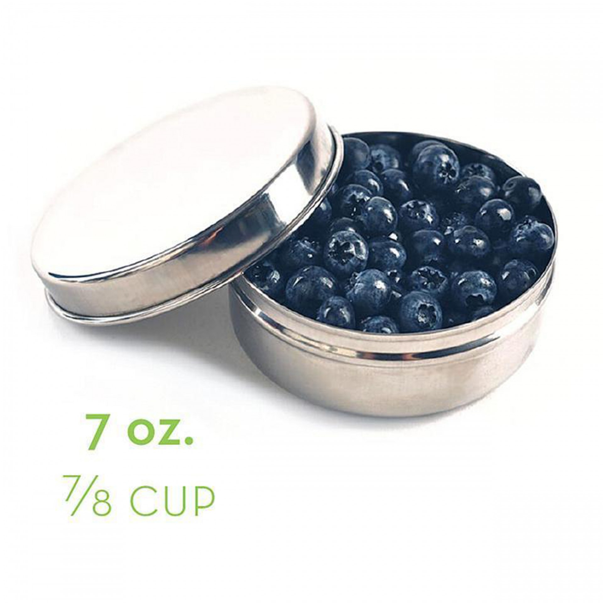 - Contains 7 oz (.8 cup). Plastic-free design is not leak-proof. Ideal for dry and damp foods - not liquids.