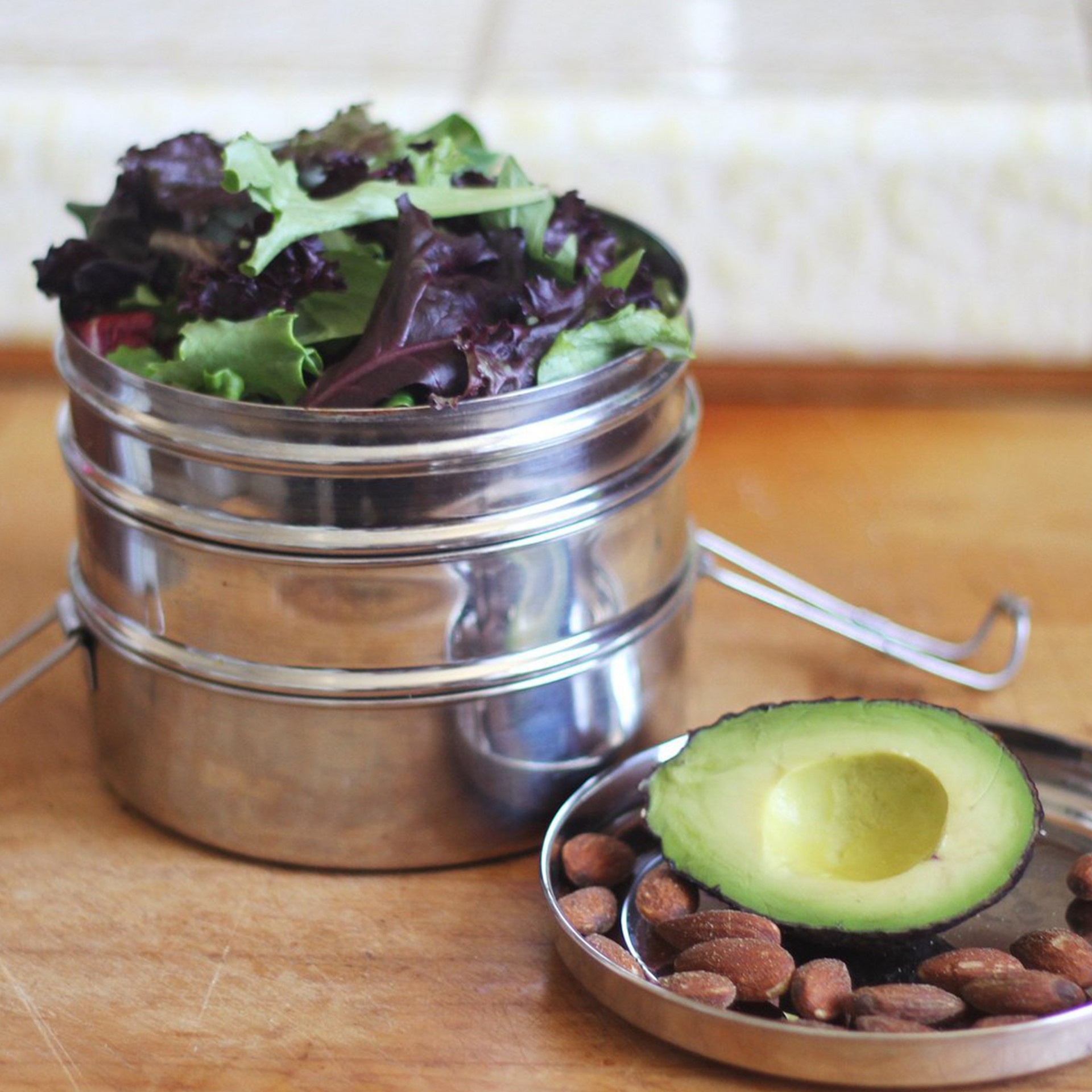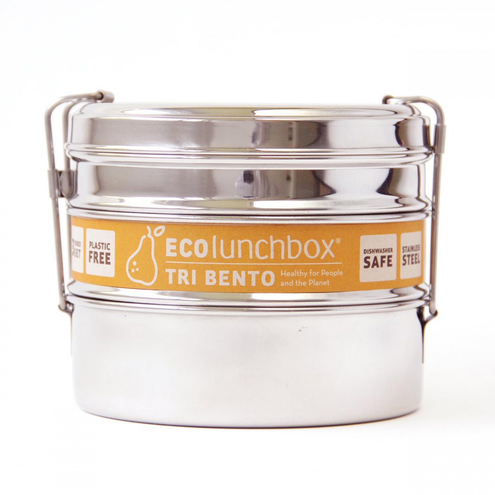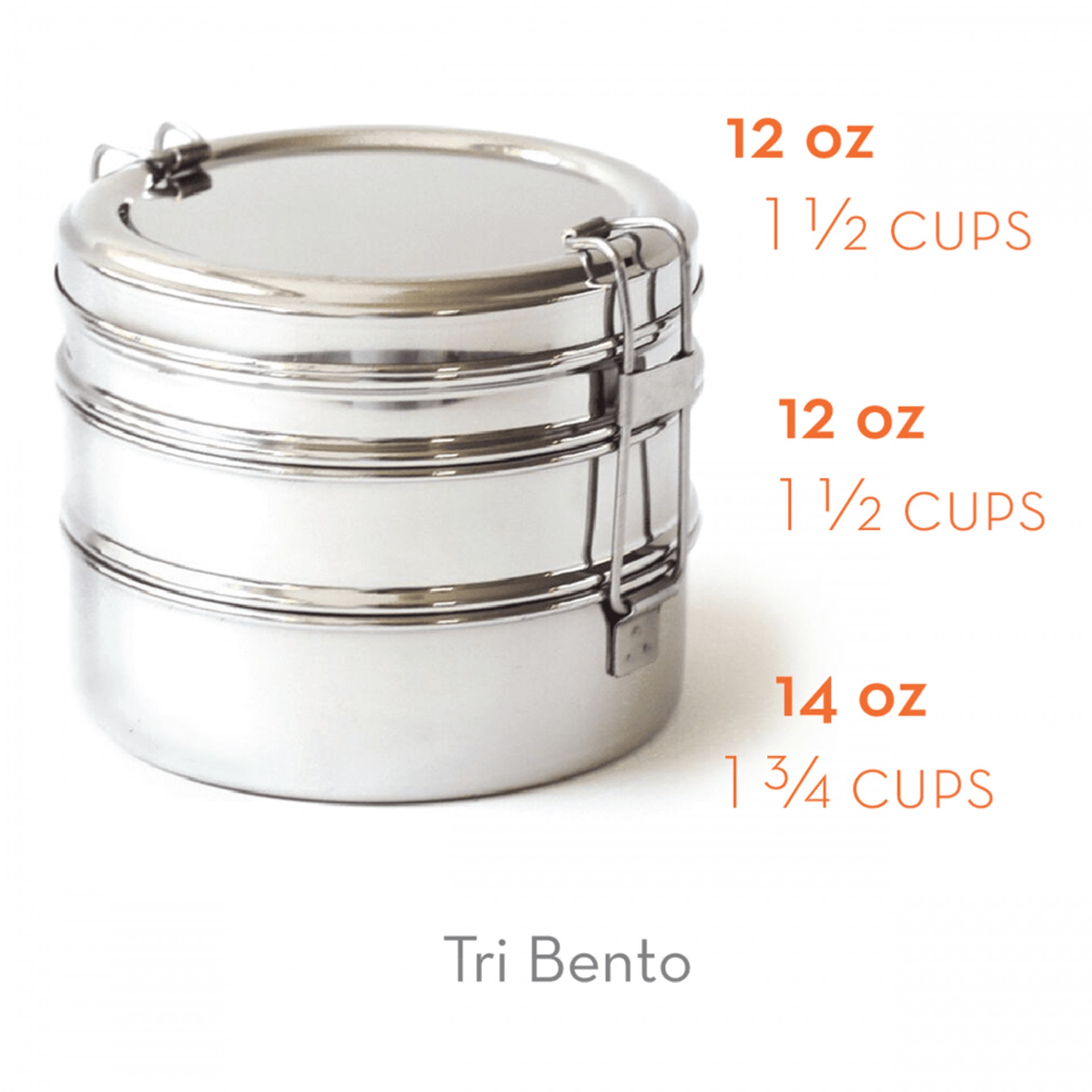 The shape of our Tri Bento lunchbox is classic of the round stainless steel "tiffins" that have been used for generations throughout India. Our Tri Bento, however, is a stand-out due to the exceptional quality of the workmanship as well as the easy-to-use clips that won't pinch. It's the perfect lunchbox for packing a trio of your favorite lunch foods!