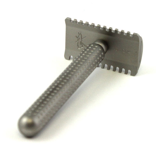 The weight of the Stainless Steel razor is the driving force in cutting the beard. The heaviness of the material beautifully takes control of the glide along the skin. For some, it's a better material because you can let the weight do the job and use your hand to slowly work around your face, learning every detail of it, carefully and quietly.