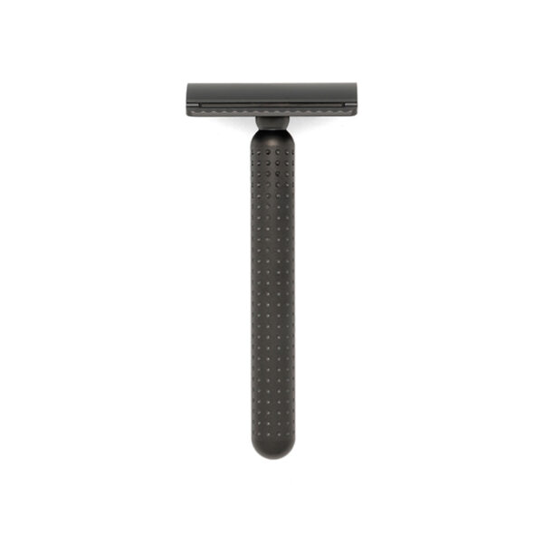 The weight of the Stainless Steel razor is the driving force in cutting the beard. The heaviness of the material beautifully takes control of the glide along the skin. For some, it's a better material because you can let the weight do the job and use your hand to slowly work around your face, learning every detail of it, carefully and quietly.