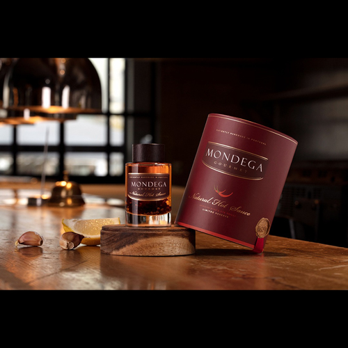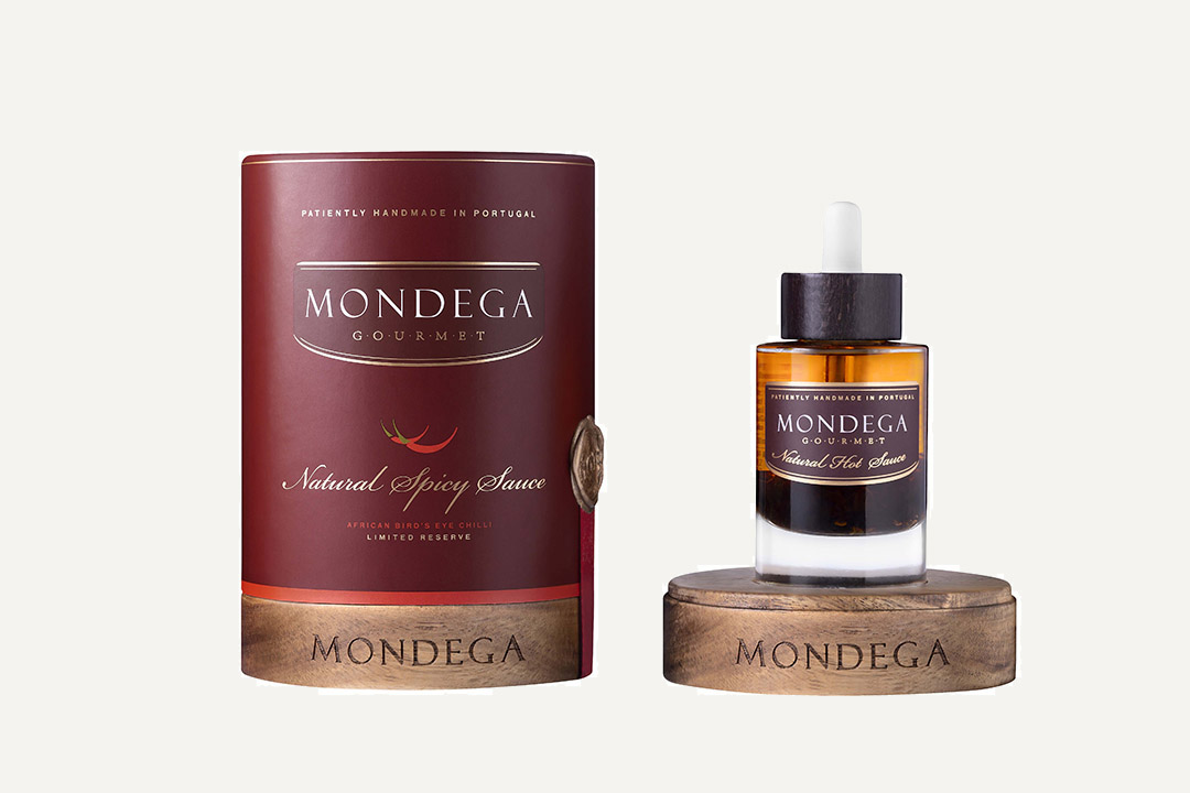 Mondega Natural Spicy Sauce é apresentado em embalagem individual com um frasco conta gotas ou em embalagem tripla, composta por um frasco conta gotas, mais duas recargas.