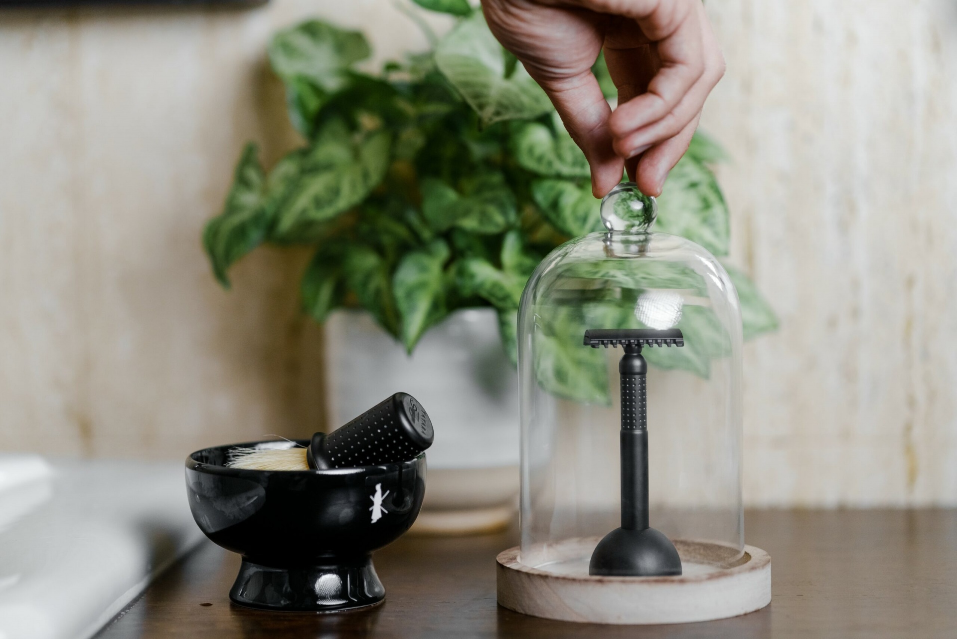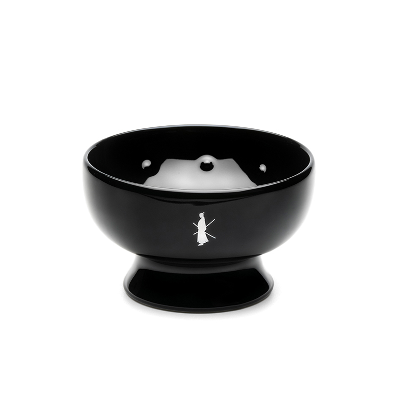 The shaving bowl is manufactured using the traditional Portuguese process of porcelain shaping. As a final finishing, the pieces are immersed in a glazed bath resulting in unique pieces of elegant shine, inspired by hand-painted Japanese techniques used in Urushi lacquer bowls.