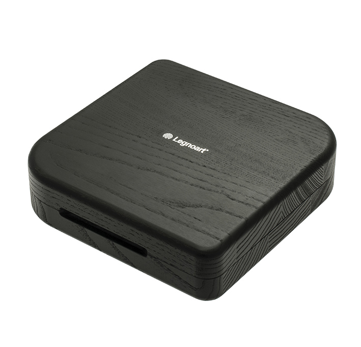 • Caixa quadrada preta de madeira com logo Longwan