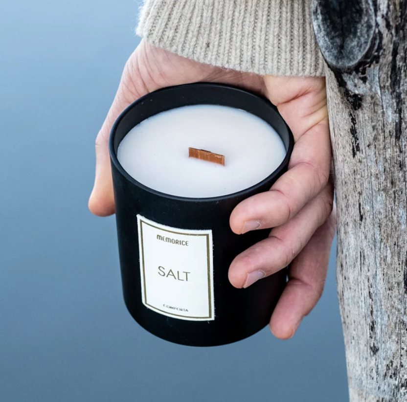 SALT SCENTED CANDLE - Vela Aromática - Essência Refrescante de Sal Marinho, Sálvia, Almíscar e Madeira de Sândalo