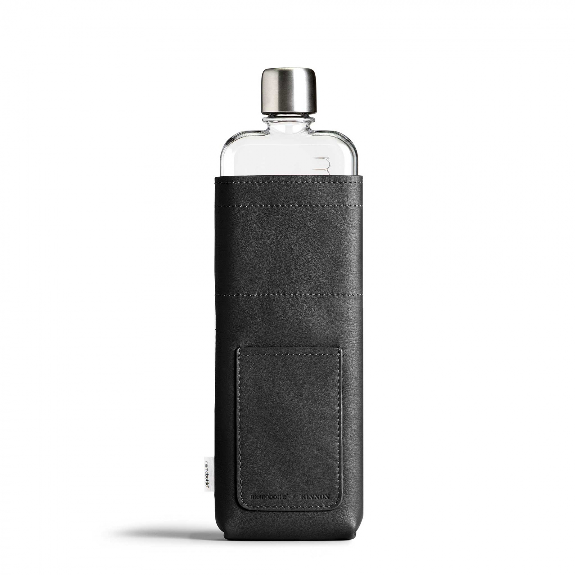 SLIM Vegan Black Leather Sleeve memobottle
