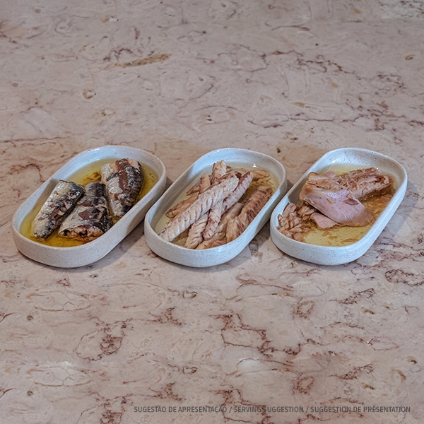 SARDINHA, FILETES DE CAVALA e FILETES DE ATUM em Azeite