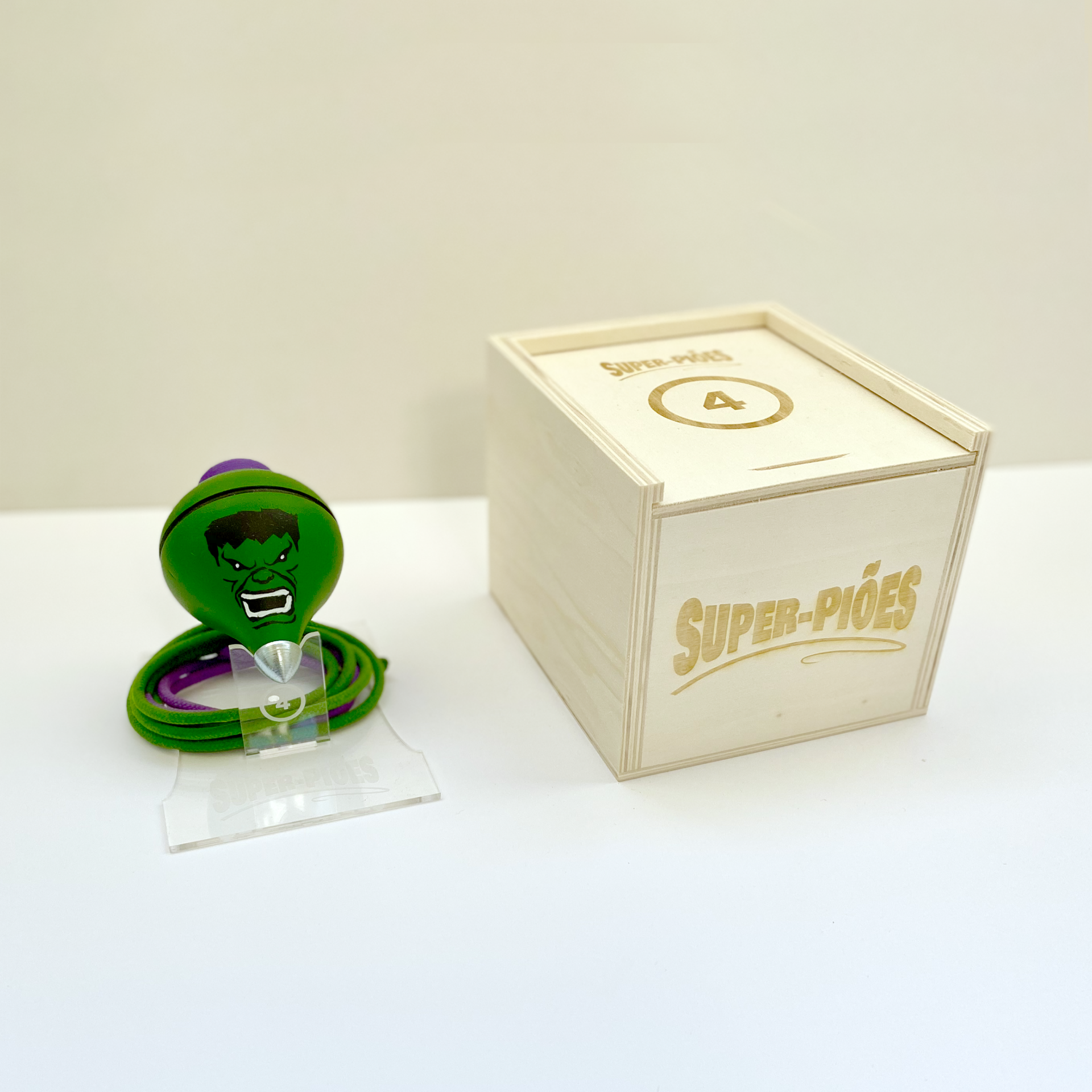Super-Piões de Madeira Pintados à Mão HULK– Clássicos da Infância Reinterpretados por Damião Vieira