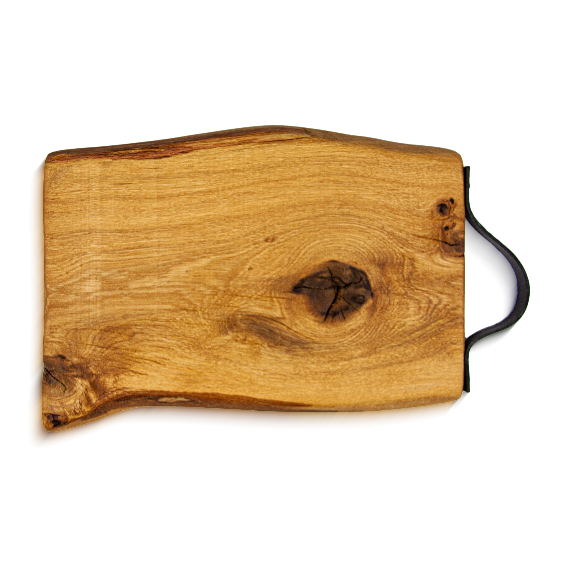 Irregular board with leather handle.