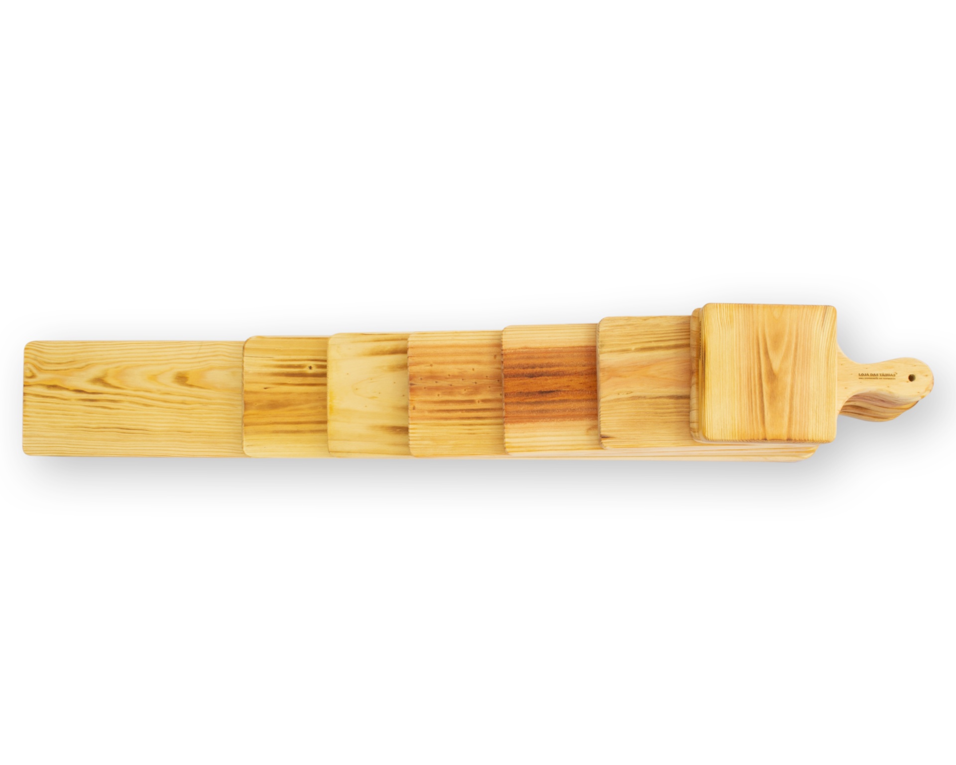 The boards are produced from natural pine, oak, olive or other wood with manual finishing, which makes them unique.