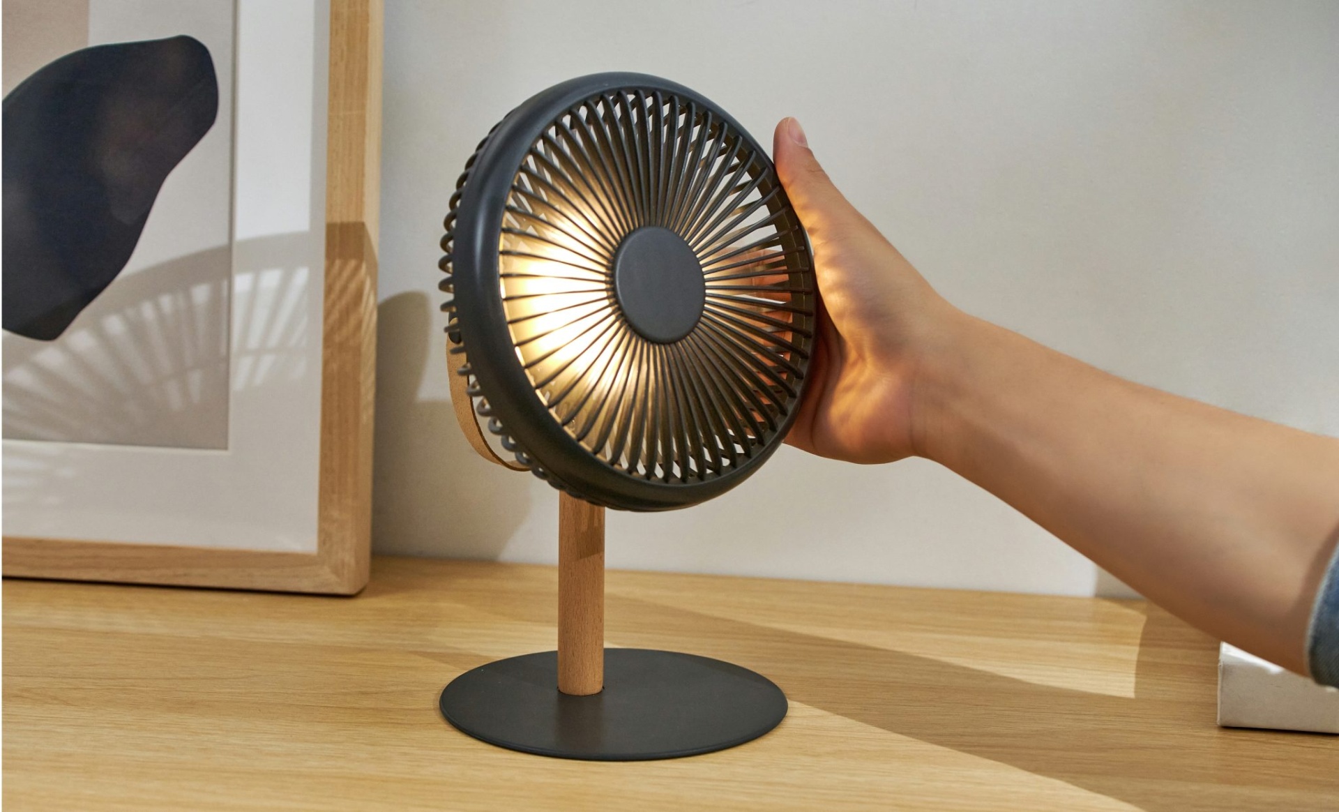 Ventilador Beyond - Com Base de Madeira, 3 Velocidades, Luz Noturna e 12 Horas de Autonomia - Smart Grey